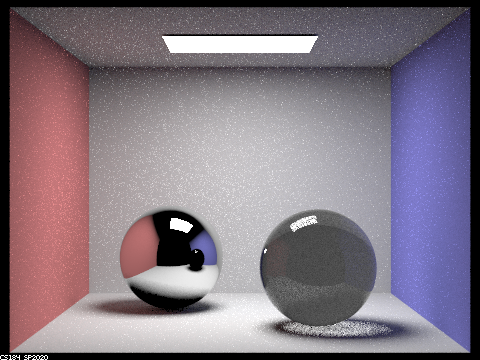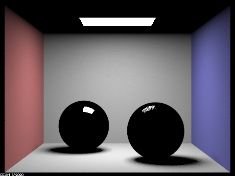 Here is a sequence of images with varying max ray depth. The sphere on the left is a mirror and the sphere on the right is glass. All images are rendered with 64 samples per pixel and 4 samples per light.
