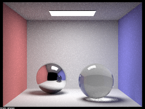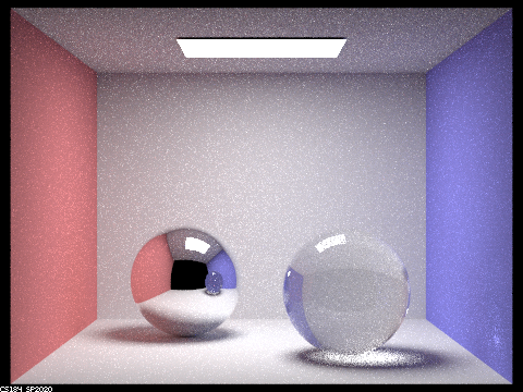 For glass materials, we have to also implement refraction. We use Snell's Law to calculate the refractance direction. The eta term used in Snell's Law is determined by the action of the incoming vector. If we are entering the surface, we use the inverse of the index of reflection. Otherwise, we use the index of reclection. We also test for total internal reflection to see if there is any refraction. As for sampling the glass BSDF, when we have total internal reflection, we treat this case as having reflection like a mirror. Otherwise, we use Schlick's approximation to approximate the result of using Fresnel equations. We use Schlick's reflection coefficient to determine if we have reflection or refraction.
