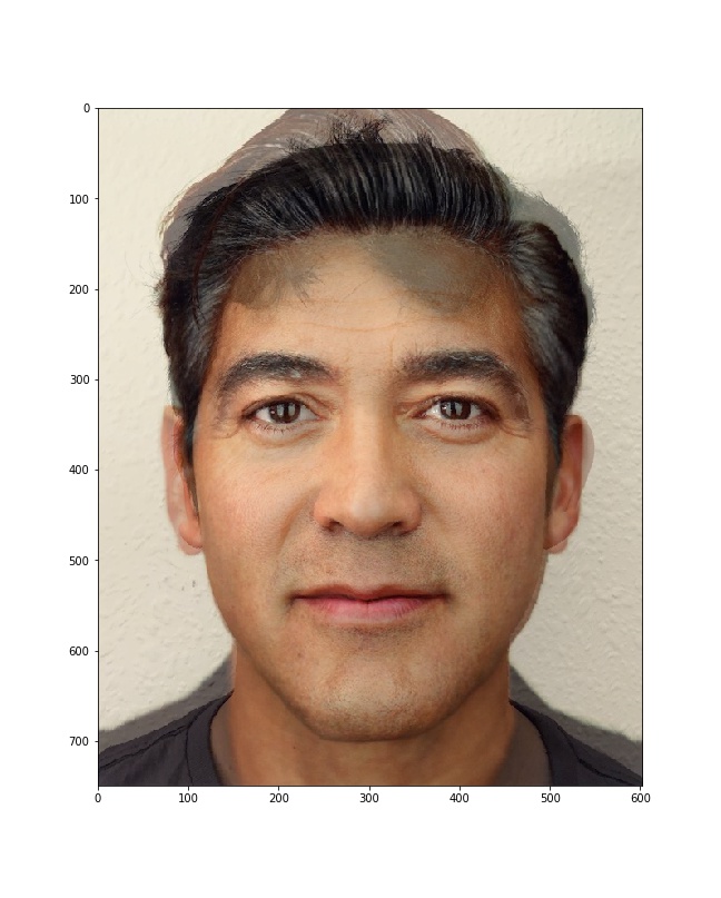 For this project, I decided to morph my face on to George Clooney's. I choose 44 correspondence points outlining basic facial features and 4 correspondence points for the four corners of the image.