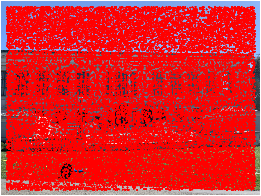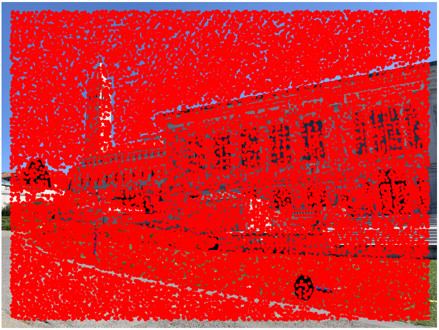 In order to find features to use as our correspondence points, we must first detect interest points in the images we want to stitch. We use Harris Interest Point Detector to get all potential interest points. However, we discard any interest points that are within 20 pixels of the image border, for reasons that will be seen in the next section (Extracting Feature Descriptors).