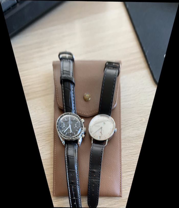Here is an example I did to make my pencil pouch appear from a bird's-eye view. On the left is the original image taken from a slant, and on the right is the rectified image.
